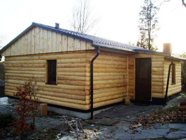 das Gartenhäuschen ist ein Blockhaus. Dies